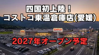 コストコ東温倉庫店(愛媛)が正式発表。四国初の倉庫店として2027年度にオープン予定。場所(北野田・国道11号沿い)、敷地規模、行政手続き、アクセス、周辺環境、ガスステーション予定など最新情報を詳しく解説します。