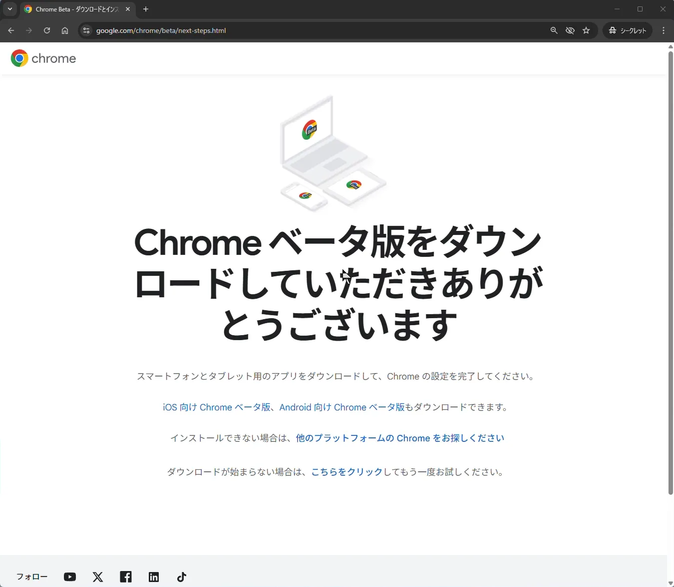 Chrome ベータ版の 公式ページ にアクセスします。