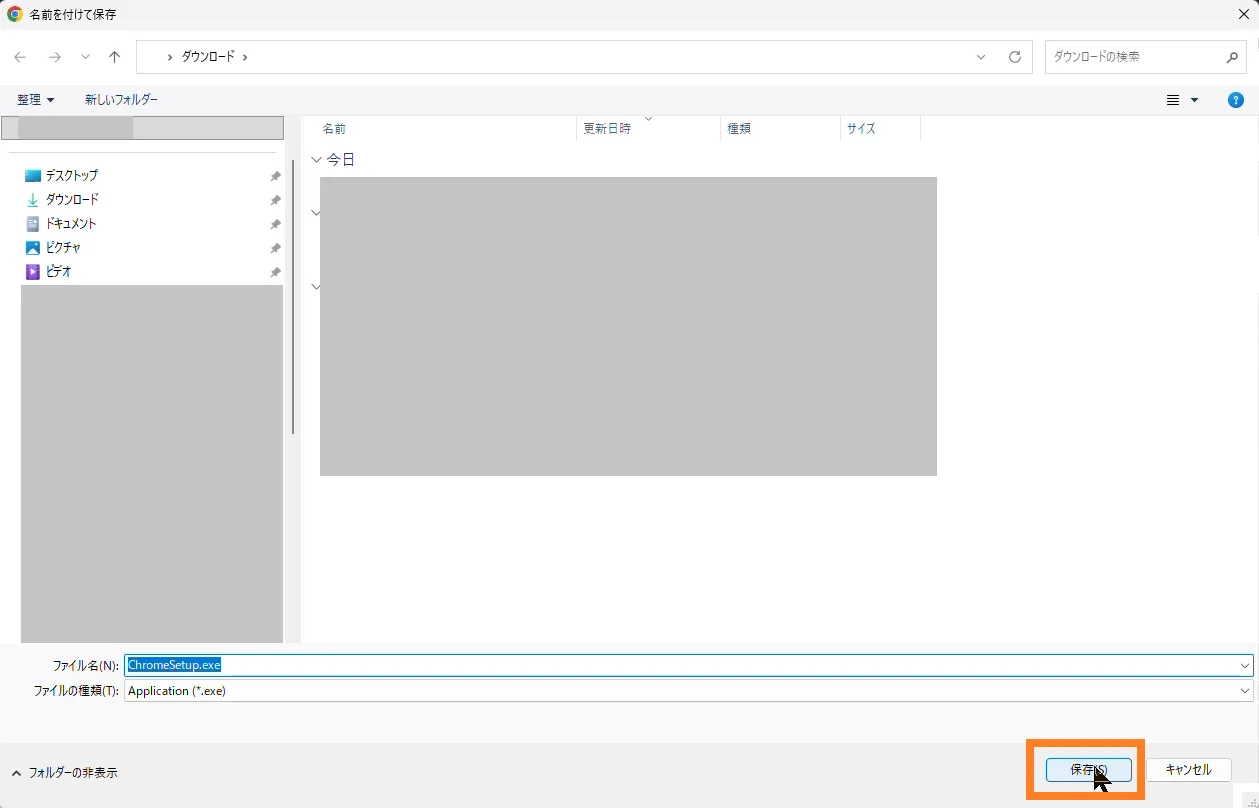 ダウンロードファイルの保存先を指定して、「保存」をクリックします。