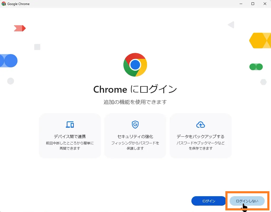 ここでは、Chrome に「ログインしない」で進めます。