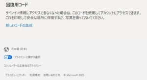 回復用コードの生成は Microsoftアカウントの公式ページ から行えます。