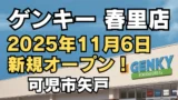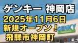 ゲンキー安城東栄が2025年11月13日に新規オープン予定であることを伝えるアイキャッチ画像。店舗外観の上にGENKYのロゴと開店日が大きく表示されている。 INFO