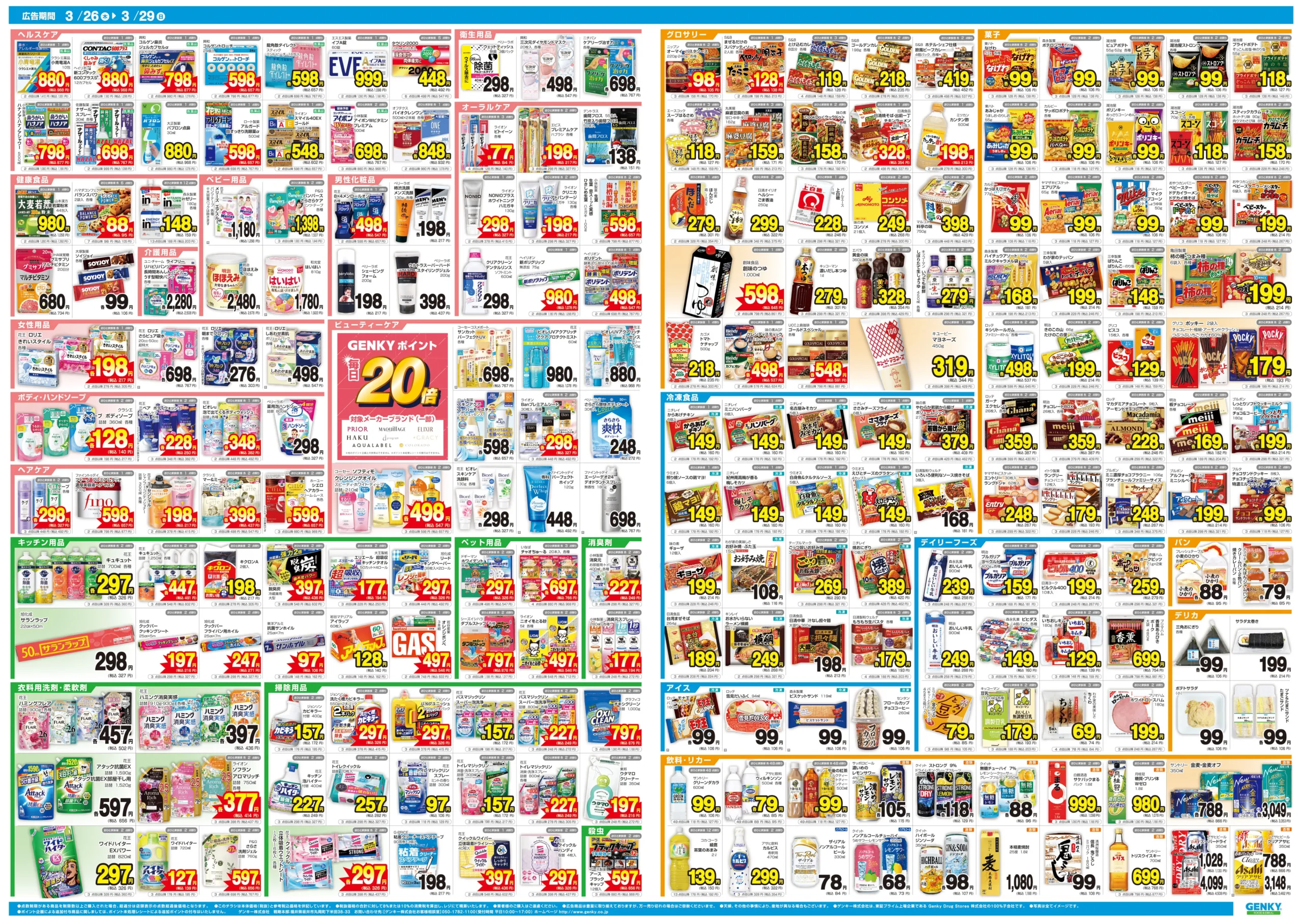 ゲンキーは、他社のように「期間限定の特売チラシ」を配信するスタイルではなく、常に低価格を維持するEDLP(Every Day Low Price)型のドラッグストアです。