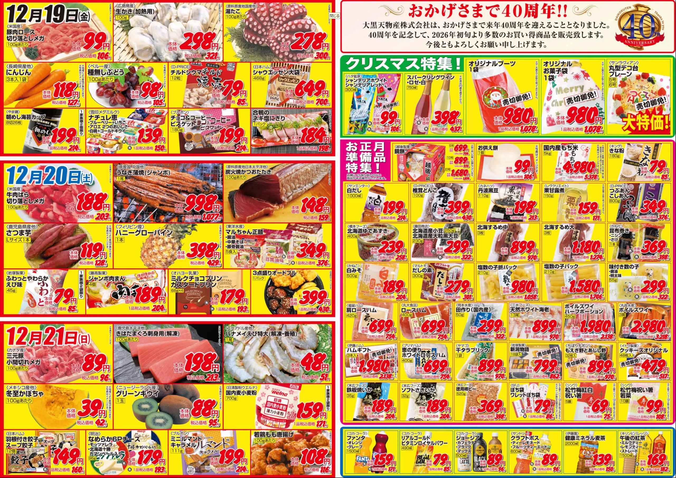 ※特売チラシは公式サイトまたは店頭にて配布予定ですが、Web上で確認でき次第、当記事にも掲載・追記いたします。