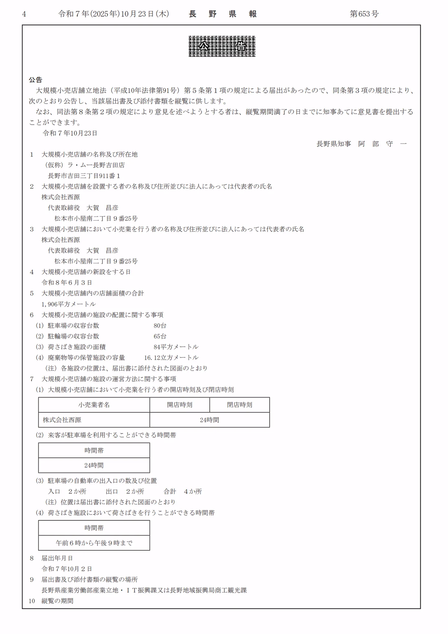 本記事の内容は、長野県報(2025年10月23日公告)に掲載された届出情報をもとに記載しています。