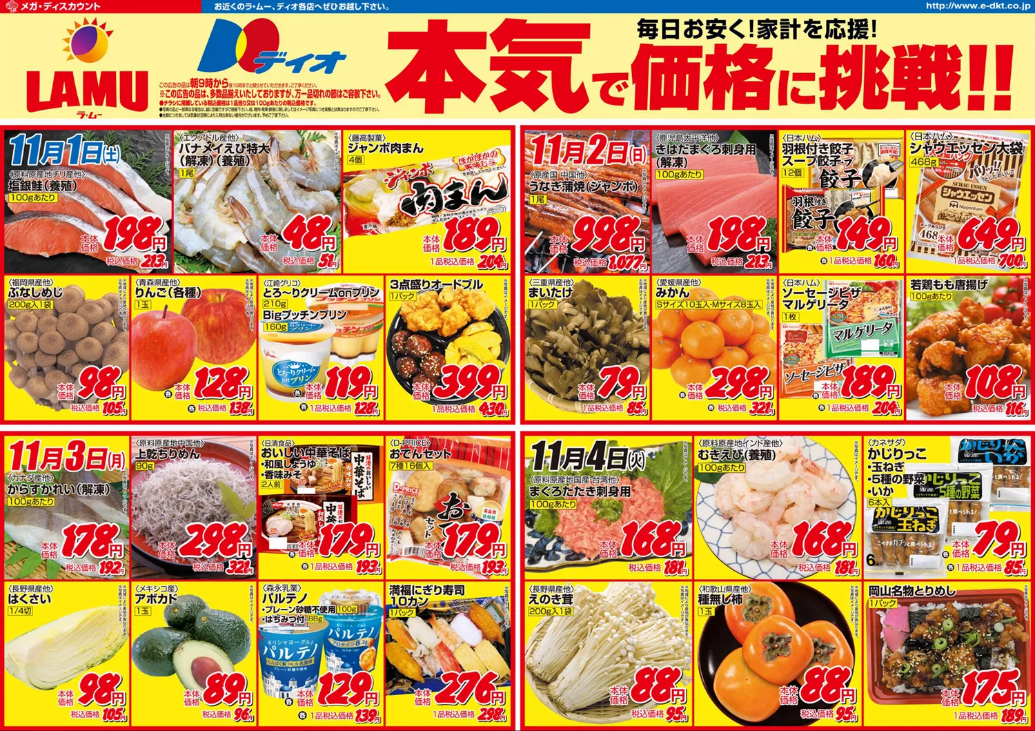 ラ・ムーでは100円たこ焼きや198円弁当をはじめ、冷凍食品やスイーツなど幅広い人気商品があります。詳しくはこちらの記事をご覧ください👇