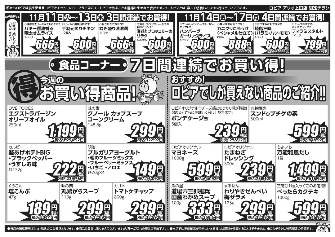 最新チラシ|ロピア アリオ上田店 11/11(火)~11/17(月)