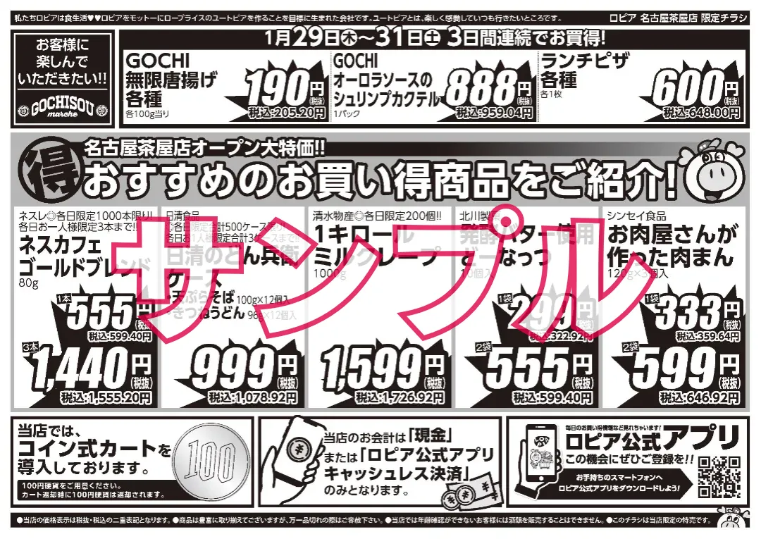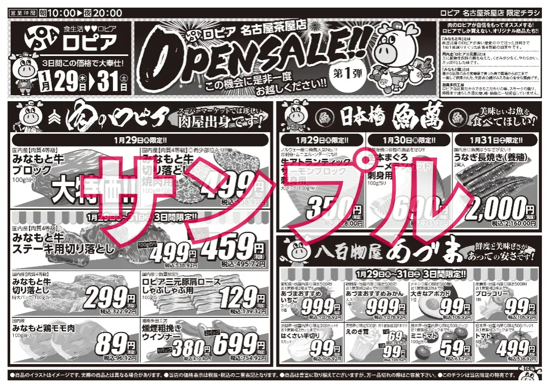 ロピアのチラシは毎週火曜更新のため、オープン前は過去事例を参考として掲載しています。