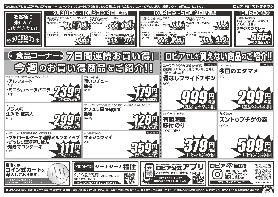 最新チラシ|ロピア 福住店 9/30(火)~10/6(月)