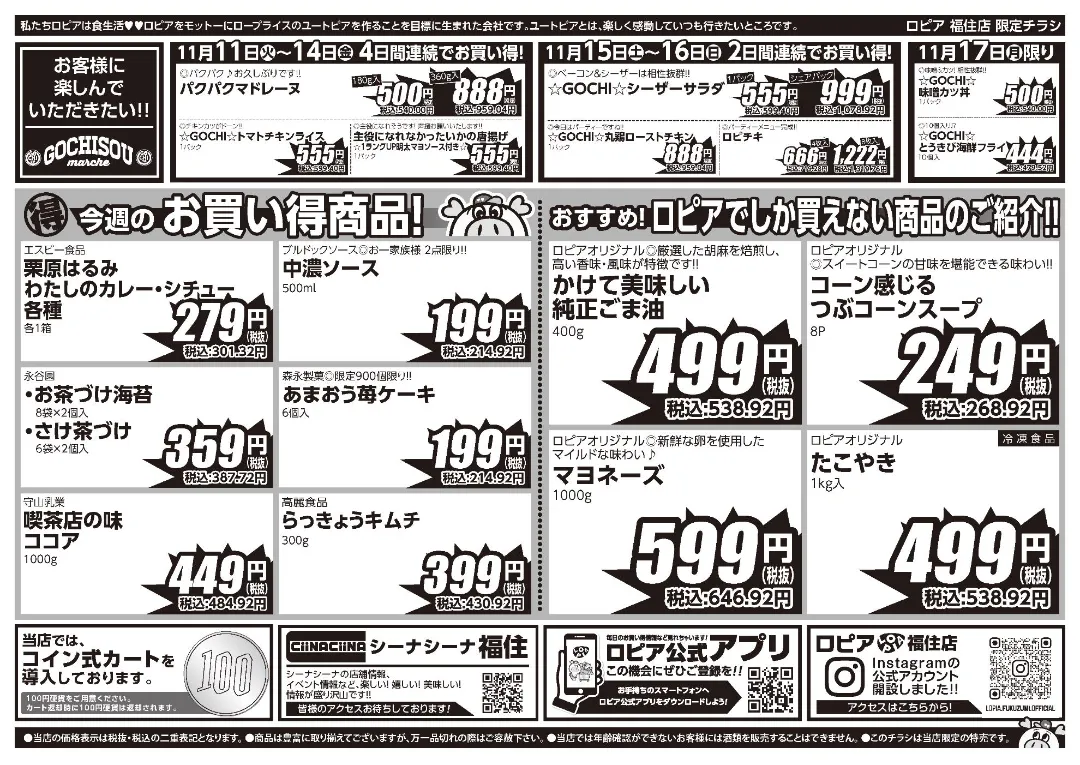 最新チラシ|ロピア 福住店 11/11(火)~11/17(月)