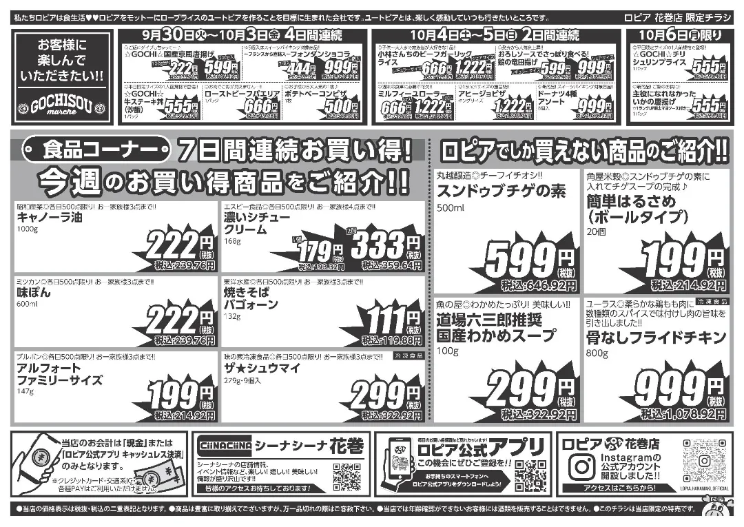 最新チラシ|ロピア 花巻店 9/30(火)~10/6(月)