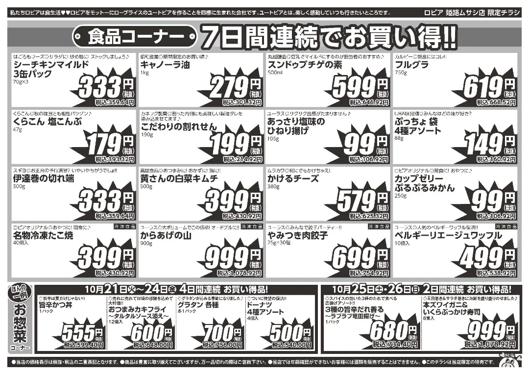 最新チラシ|ロピア 姫路ムサシ店 10/21(火)~10/27(月)