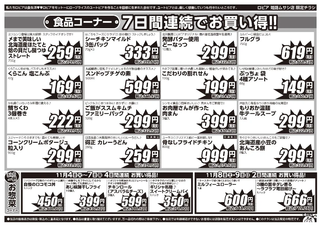 最新チラシ|ロピア 姫路ムサシ店 11/4(火)~11/10(月)
