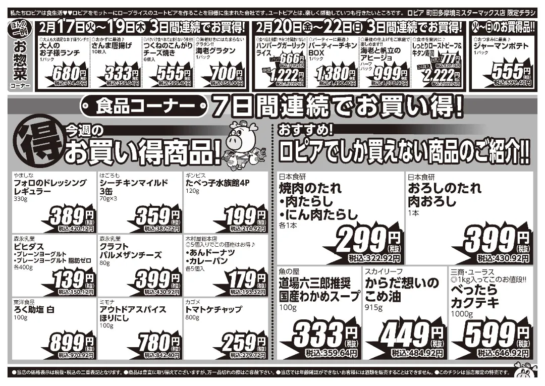 ロピア 町田多摩境ミスターマックス店のチラシ【2/17 最新情報更新】