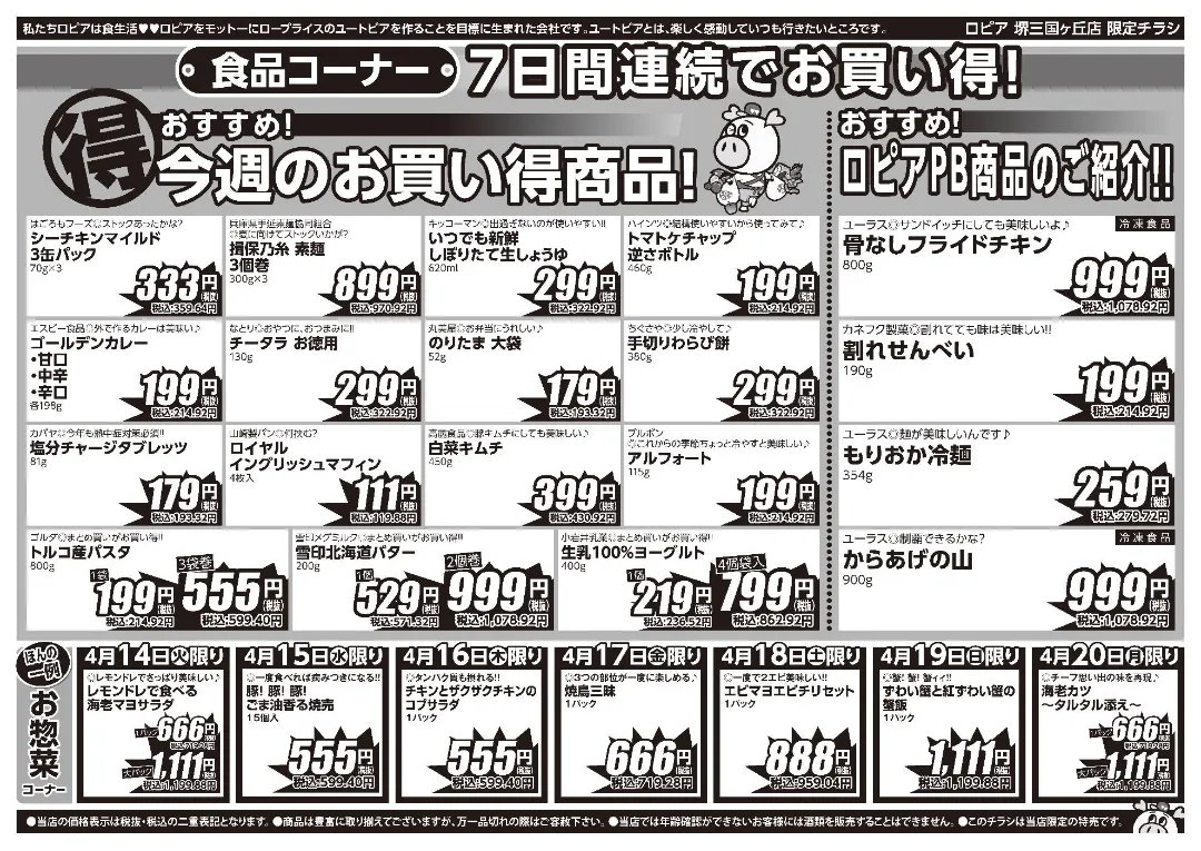 最新チラシ|ロピア堺三国ヶ丘店 4/14(火)~4/20(月)