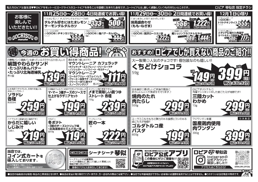 最新チラシ|ロピア 琴似店 11/25(火)~12/1(月)