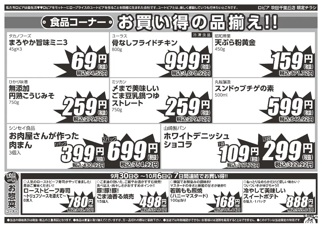 最新チラシ|ロピア 吹田千里丘店 9/30(火)~10/6(月)