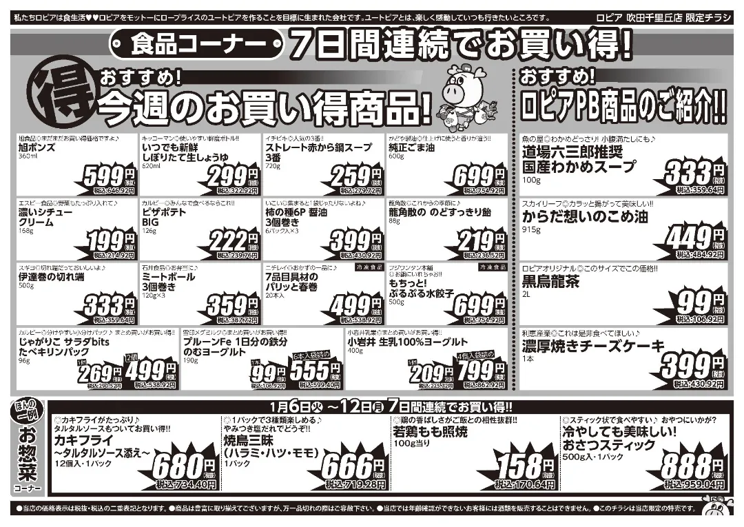 最新チラシ|ロピア 吹田千里丘店 1/6(火)~12(月)