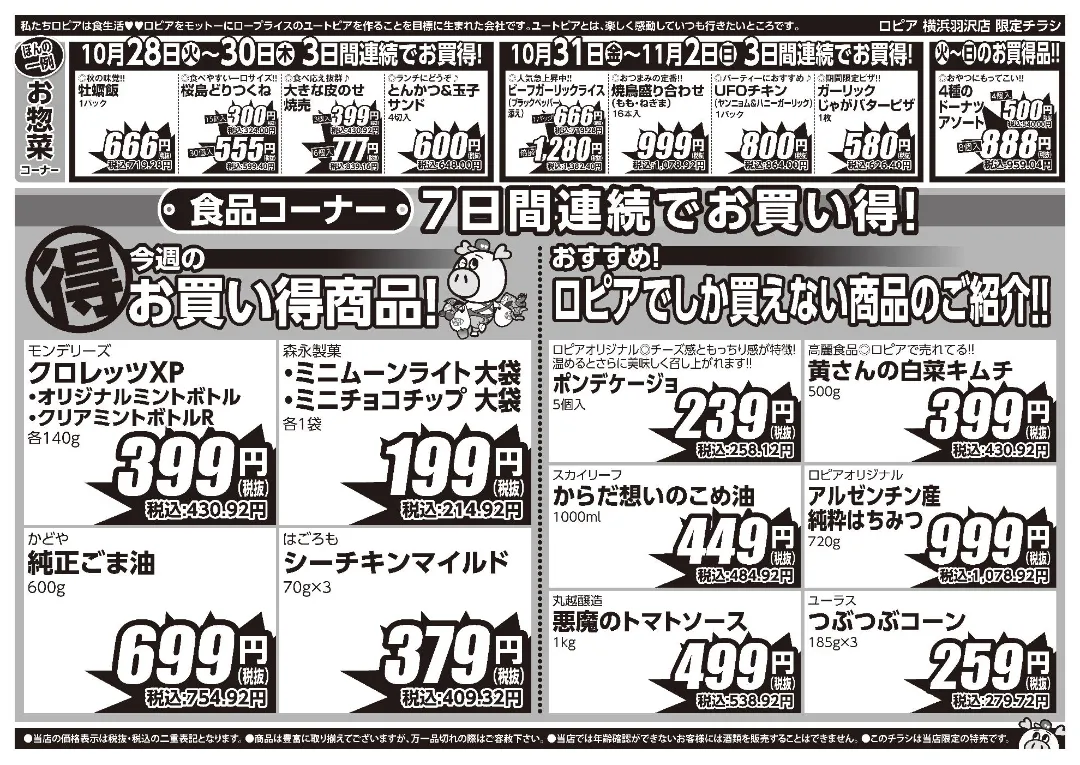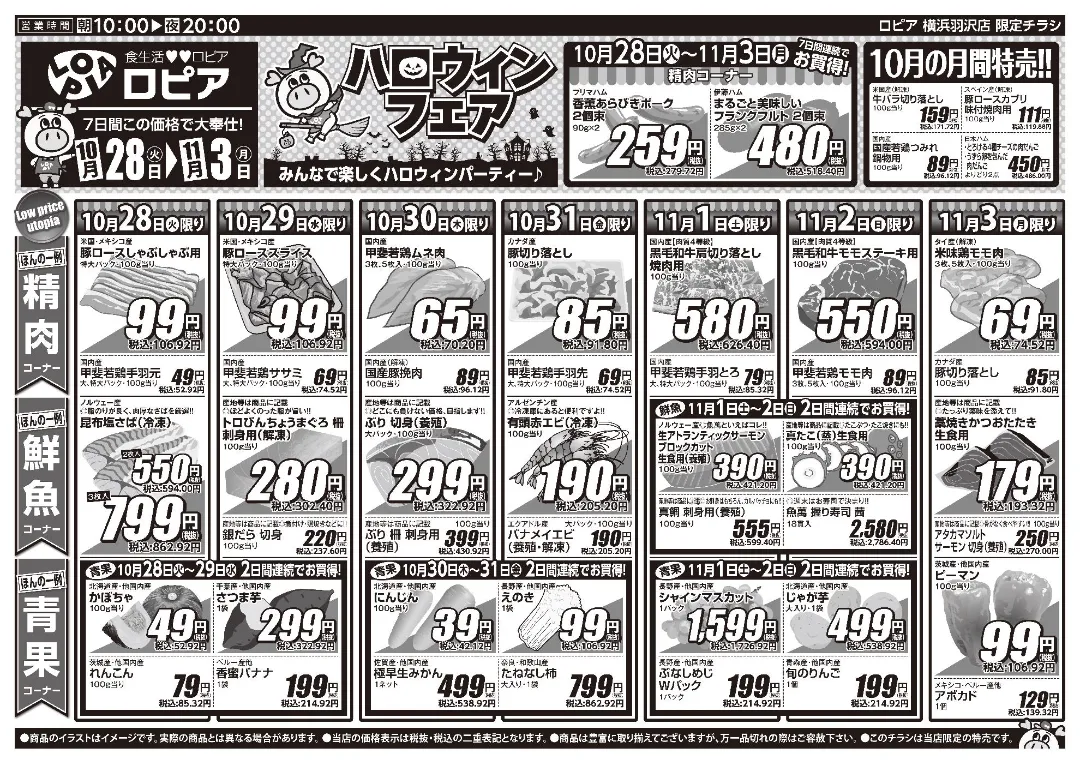 最新チラシ|ロピア 横浜羽沢店 10/28(火)~11/3(月)