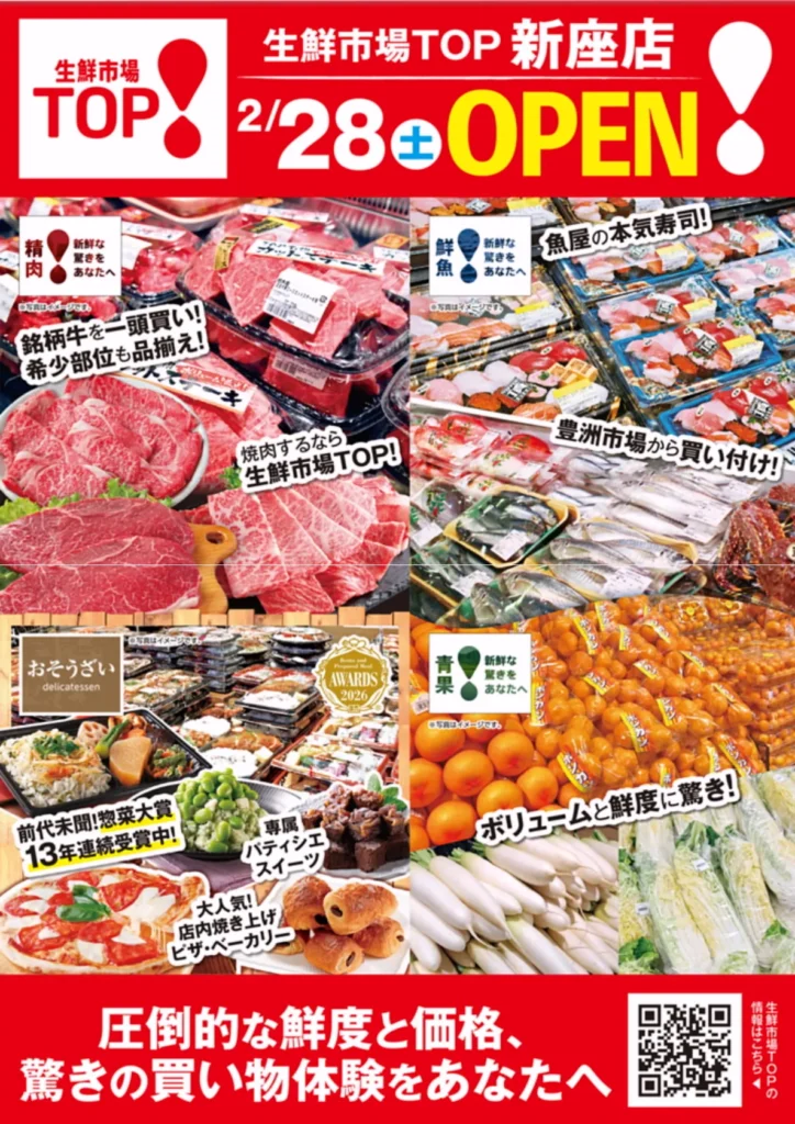 「生鮮市場TOP 新座店」が2026年2月28日(土)に新規オープンします。
