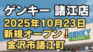 INFO ゲンキー 諸江店はいつオープン? 2025年10月23日 新規オープン予定!アクセス・店舗情報を徹底解説|最新情報まとめ 石川県金沢市諸江町にドラッグストア「ゲンキー 諸江店」が2025年10月23日オープン予定。所在地・アクセス・営業時間・求人情報をわかりやすくまとめました。 2025.10.11 INFO