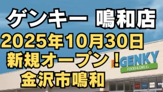 INFO ゲンキー 鳴和店はいつオープン? 2025年10月30日 新規オープン予定!アクセス・店舗情報を徹底解説|最新情報まとめ 石川県金沢市鳴和にドラッグストア「ゲンキー 鳴和店」が2025年10月30日オープン予定。所在地・アクセス・営業時間・求人情報をわかりやすくまとめました。 2025.10.19 INFO