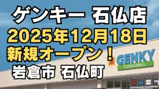 愛知県岩倉市にドラッグストア「ゲンキー 石仏店」が2025年12月18日オープン予定。歴史ある長福寺や五条川の桜並木が広がる石仏町エリアに登場します。所在地・アクセス・営業時間・求人情報をわかりやすく紹介します。