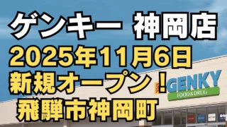 INFO ゲンキー 神岡店はいつオープン? 2025年11月6日 新規オープン予定!アクセス・店舗情報を徹底解説|最新情報まとめ 岐阜県飛騨市神岡町にドラッグストア「ゲンキー 神岡店」が2025年11月6日オープン予定。所在地・アクセス・営業時間・求人情報をわかりやすくまとめました。 2025.10.22 INFO